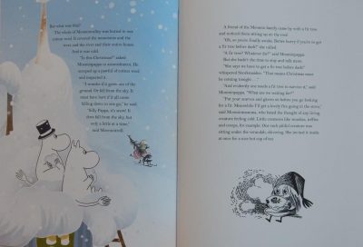 It’s with the help of this tiny being that they manage eventually to adorn their tree and rustle up some favourite foods. But just when they think everything is going well, Hemulen reappears with talk of presents so they too are organised, after which the Moomins sit back and wait for disaster to strike.