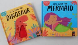 Search-and-find fun with a hunt for a T.Rex in the first book, and Mermaid in the second, is given a tactile element with felt flaps and die cut pages.
