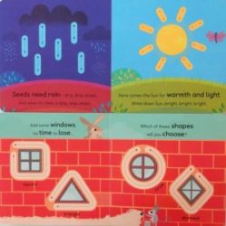 There’s a mathematical thread to Build a House with such vocabulary as basic 2D shape names and simple counting (of roof tiles) as well as a spread showing how bricks might be bonded.
