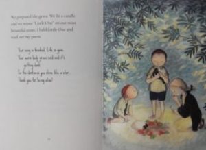 Although written from a child with a Christian world view’s perspective of death, if shared in an education setting, the book could open up a whole topic on religious rituals.