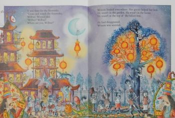 Then comes a spectacular parade with dragons large and small, as well as lions including a baby one; but just as the fireworks are about to start, Winnie realises that Wilbur has vanished.