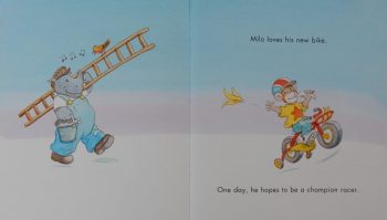 In his haste to see the finish of the Big Cycle Race would-be champion bike racer and proud owner of a new bicycle, Milo,