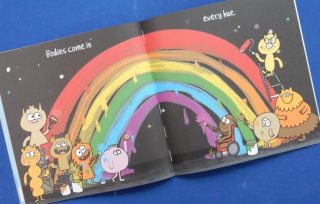 He presents us with zany illustrations of big bodies and small bodies, wide ones and tall ones; bodies weak and strong,
