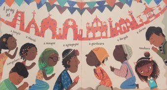 After its terrific front endpaper, the book begins with one lively child announcing ‘I am brown / I am beautiful / I am perfect’, then showing herself as the epitome of love, friendship and happiness.