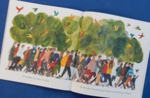 Marc Martin’s illustrations don’t shy away from the darkness but the bright light of hope prevails as the final spreads show how by raising our collective voices we can make sure that ALL children, wherever they are, can sing their own song; a song that starts from the day they are born – a song of love, of joy and of freedom ‘–unique and tiny. Fragile. But never quite alone.’
