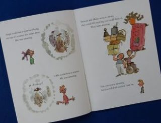 Quentin Blake’s genius shines forth in every way in this book; his characters are wonderfully portrayed and he leaves plenty of space for readers to bring their own interpretations to the story, though one thing is absolutely clear: do whatever you can – a crisis situation can bring out the most awesome talents in every single one of us.