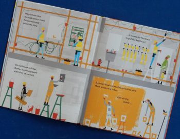 Writer, Polly Faber talks directly to her intended young audience including occasional rhyme and alliteration in her engaging narrative. She’s also included a pictorial glossary of the people and machines involved in the building’s transformation.