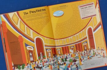 Every alluring spread is packed with fine details to pore over as well as a list of items to find (from a bird nesting in a centurion’s helmet to a fainting lady) and plenty of facts in bite-sized chunks.