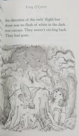 She is led by a white owl into a woodland area that is being chopped down to grow more maize crops. The mother owl has a family of baby owlets that she gathers up and off they fly, all except one little chick that hasn’t yet got the hang of becoming airborne.