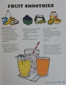 A word of caution however, if you’re a vegan family then some of the recipes won’t work for you unless you adapt them; but in other cases vegan alternatives are suggested. For example in ‘Breakfasts, snacks and breads’ the fruit smoothies,