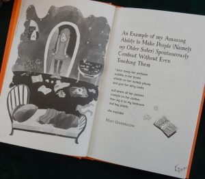 And I’m going to share Matt Goodfellow’s An Example of my Amazing Ability to Make People (Namely my Older Sister) Spontaneously Combust Without Even Touching Them with 5 year old Samuel. It goes like this: