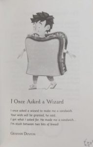 I was greatly amused to find the book opened itself at Stan Cullimore’s Song of the Witches (when their Internet Wasn’t Working) with its opening lines ‘Double, double, click that bubble / We have got computer trouble’. Shame I couldn’t fix it with the poet’s final line ‘Just had to switch it off and on again’ that works so often with computer woes. I suspect Paul himself was using a bit of his ‘Telepathically Magical’ power to cause me to start on that particular page, and no, my answer was not … 3 and I’m still struggling – three days later. A-hah! That’s it!