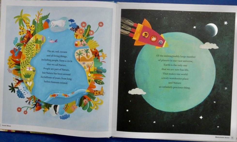 Thirty three award-winning artists from around the world have each contributed a terrific illustration for this book, which is subtitled A Children’s Terra Carta for Nature, People and Planet. It’s based on the 13 point Terra Carta – a kind of roadmap created by HRH The Prince of Wales (who contributes a foreword) and his initiative Sustainable Markets, which aims to ‘put nature, people and planet at the heart of global value creation’ set out at the back of the book using the original language of the Terra Carta’s preface).