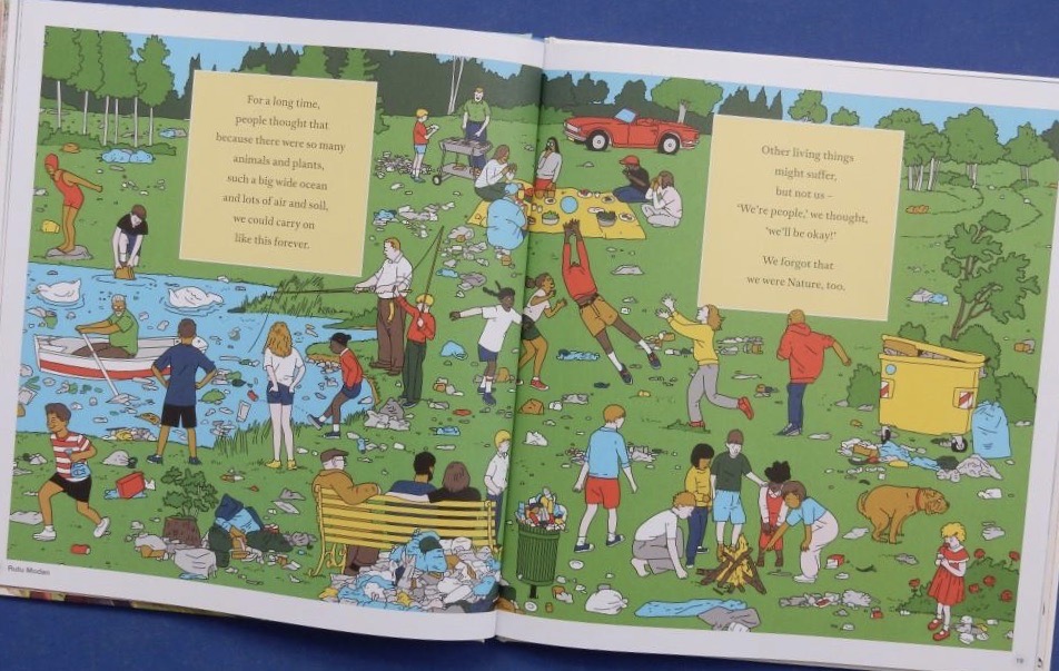 However it’s not too late quite yet; but we need to act quickly to bring Nature back into balance and the ways so to do are set out in the Terra Carta. Herein seven ‘WE WILL’ intentions are stated. It’s no good though if they stay as intentions; actions are crucial and as the banner held by one of the young people on the final spread says, IT’S UP TO US! Young people from all over the world have been at the forefront of the movement to put Nature first but it’s up to adult individuals, businesses, politicians and governments everywhere to recognise the urgency of the situation and take decisive action, NOW!