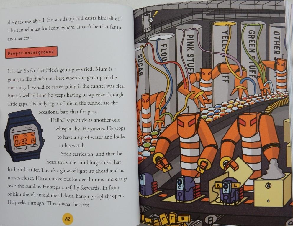 Now, feeling isolated both in class and at home, the already suspicious Stick Boy gets on the case. His investigations soon see him discovering a secret underground tunnel that leads him to a cavern full of robots. Looks like a take over of the town is indicated.