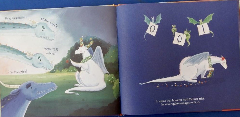 Now though, Maurice too is entering a dragons only contest and hoping to create some of his splendiferous hibiscus flowers. However that’s not what happens when it comes to his turn to throw a flame; nor does he impress with magnificent horns and ferocious teeth.