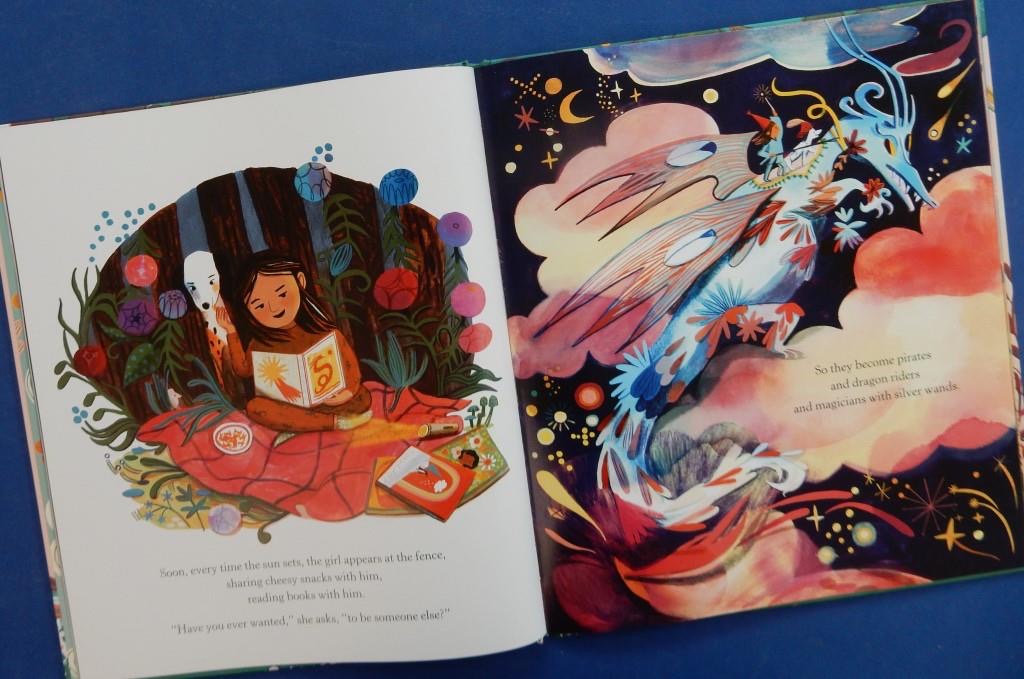 This gorgeous book is about a little girl, a lonely dog, two homes separated by a fence, reading together and the power of the imagination.