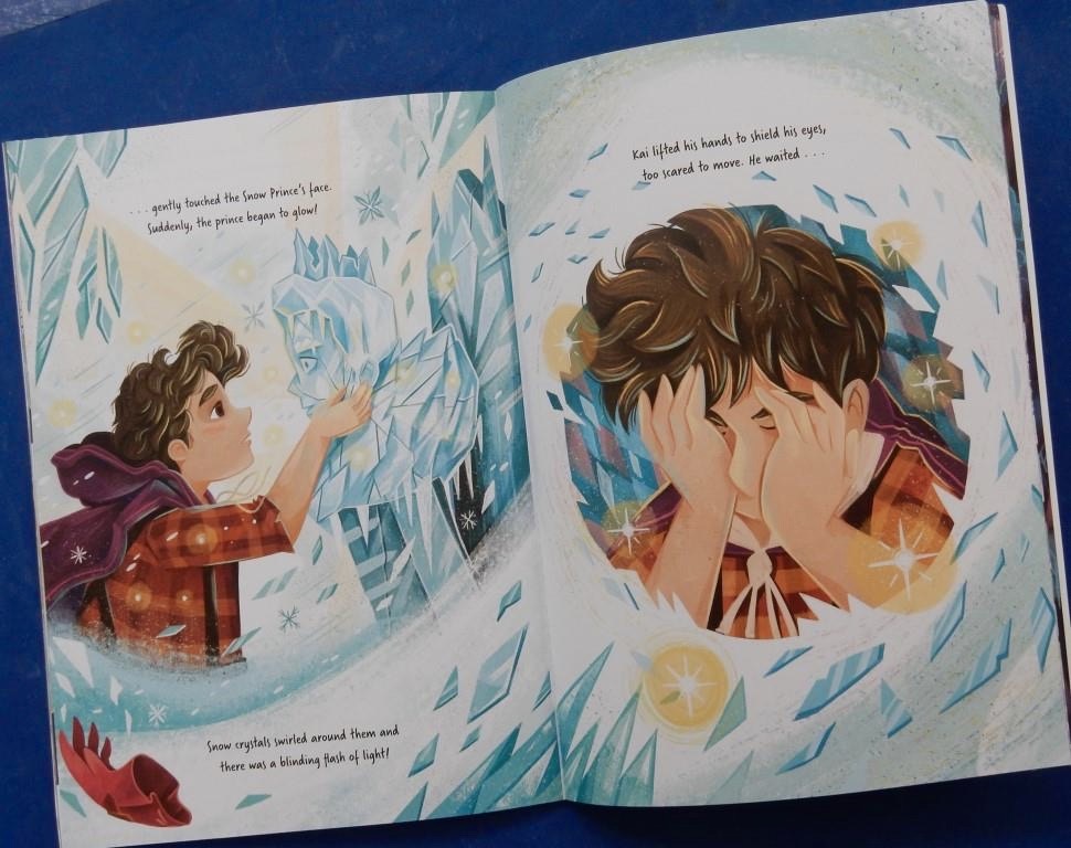 Kai is a woodcutter who enjoys carving statues for people to enjoy on Christmas Eve but nobody ever passes by. This year he is feeling particularly lonely without his grandmother, whose wondrous tale he recalls: ‘But this year he was alone,’ we read. Then as Kai ponders upon the possibility that his grandmother’s stories might be true, he is visited, but only briefly, by the Snow Prince. What he sees in the Prince’s eyes is hope.
