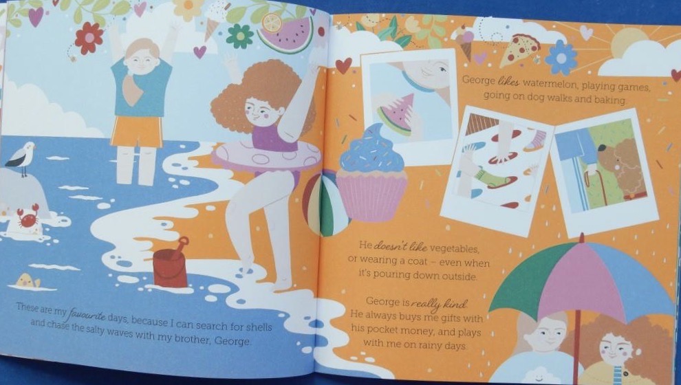 Molly goes on to talk of the likes and dislikes of each one: she for example likes pasta, puddle jumping and adventures with her dog; George dislikes vegetables, wearing a coat regardless of the weather and likes walking the dog, playing games and watermelon. He’s also very kind to his sister.