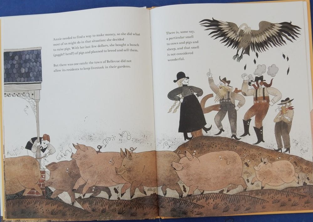 When Henry died his widow, Annie was tricked by a crooked banker to invest her money in his bank; it failed and she lost almost all of it. With the little left she bought some pigs intending to become a breeder. However the Bellevue townsfolk would have none of it