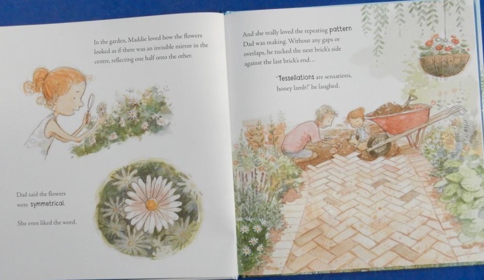 No matter what young Maddie sees or does, her everyday world is full of mathematical ideas; that’s just how she sees it, thinks about it and loves it. Perhaps it’s the early morning sunlight streaming through her bedroom blinds; then there are those fractions in her piano practice, the symmetry in flowers, the tessellating pattern in the pathway she and Dad make together,