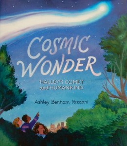 At every turn of the page, Ashley Benham-Yazdani’s luminescent, mixed media illustrations show the soft-edged comet shooting across an inky wash sky and gorgeous scenes of the happenings on Earth through the ages.