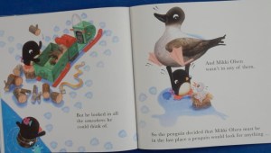 One day a sticky icky fish gets stuck to Mikki Olsen’s posterior and when the penguin then sits on the teddy, Mikki sticks to his bottom, unbeknown to the weary penguin who goes home and falls fast asleep.