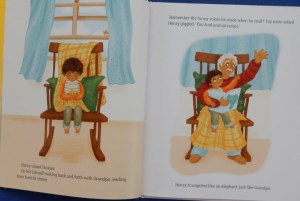 It’s Sunday morning and Henry has woken up feeling sad.. His Grandpa died just a short while ago and the boy goes downstairs to share a hug with his mum. She responds to Henry’s “Why did he have to die?” question by saying that Grandpa’s body had become too frail but his love will live on forever. She goes on to show the boy how she knows this is so. First she suggests he should sit in the rocking chair and having shut his eyes, Henry is able to feel Grandpa’s presence when they read stories together.