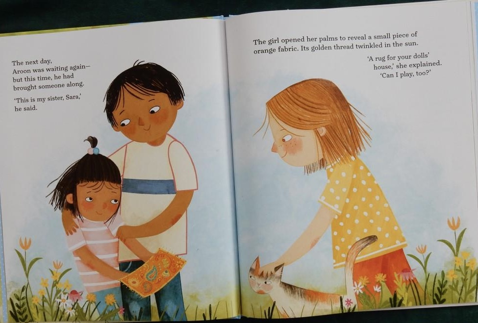 Next morning to her surprise she sees a boy looking at the dolls’ house and he asks to play with her. Mia agrees and she and Aaron spend the day making things for the dolls’ house. The following day Aaron appears again, accompanied by his sister who has an offering for the house and also wants to play.