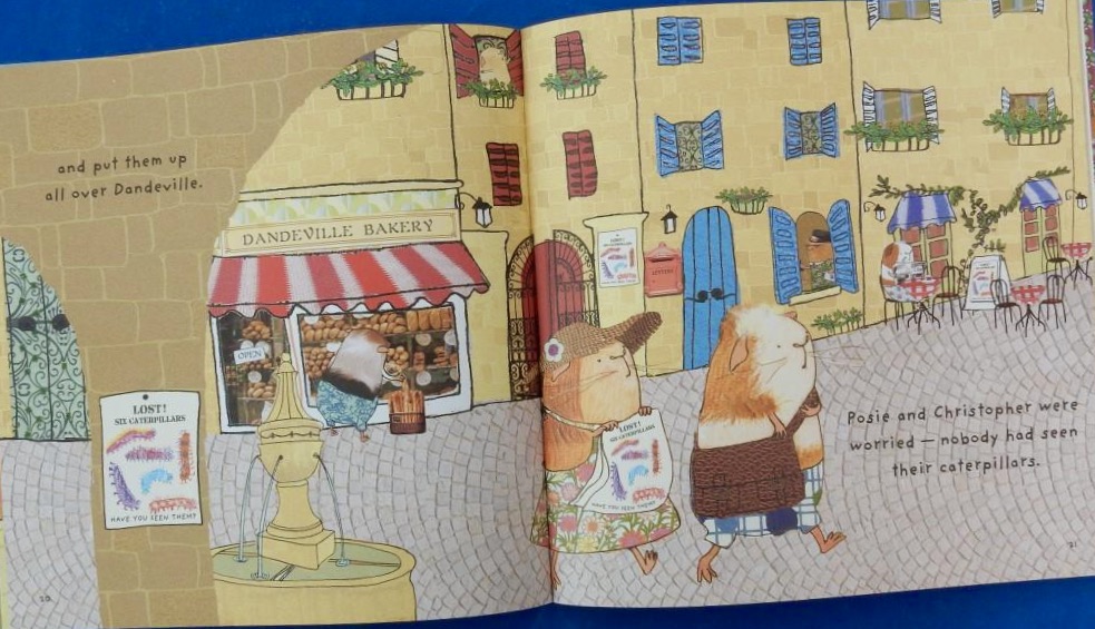 The friends make some “LOST! ‘ posters and paste them all over Dandeville but nobody has seen the caterpillars. Then comes an email from Mr Rosetti, telling them to bring the jars that had housed the caterpillars to his cafe for inspection.