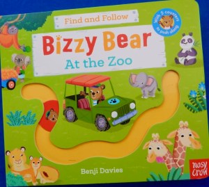 – more help needed by Bizzy, not only to find the baby crocodiles but also the penguins. He drives his off-road jeep to get to those and meets lots of other animals on the way; and then it’s time to go home. First though he needs to say goodbye to the pandas – toddler help required again.