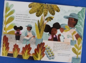 she sets up a class field trip to a greenhouse. When her classmates her about this, some of them start talking about the plants they are missing from their home countries such as The Republic of Congo and India. They also ask Amina to join them in their play outside next time. The weeks pass and at last it’s the field trip. Amina is a bit disappointed that she doesn’t see sweet potatoes growing in the greenhouse though there are lots of other tropical plants; nonetheless the trip is a success. Particularly when Mr Lokon discovers that she was hoping to find sweet potatoes and gives her some slips to plant.