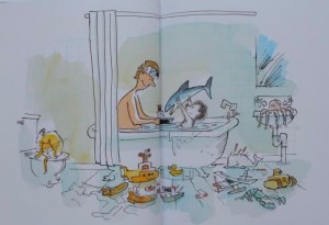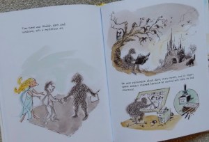It’s when Sketch encounters other children that things get a bit challenging, though the boy isn’t bothered; he merely gets on with what he likes to do – investigate and invent. When he starts school, the headteacher looks with displeasure at his scruffiness and expects trouble from Sketch. His teachers look disapprovingly at his writing – a jumble of lowercase and capital letters – and tell him to write as the others do and they certainly don’t appreciate his active imagination. One member of staff, the art teacher . Miss Beauregard, does create an environment wherein Sketch is happy; she loves his work, which is so different from that of the other pupils and gives him words of encouragement, telling him to persevere.