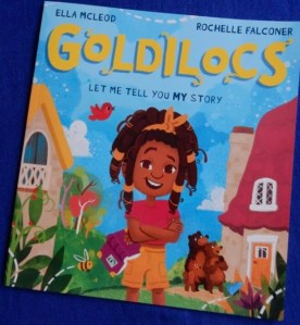 Readers of this blog will know that I’m a fractured fairytales enthusiast and this one certainly fits the bill. It’s Goldilocs narrating her own story and as you’ll notice from the cover, her hair is black. Her name comes from other golden attributes – her style, her beads and her smile. She’s a resident of fairyland and being a girl, she has only three options: she can be a wicked witch, an evil power mad queen or a royal princess. The last Goldilocs considers the worst as a prince’s kiss is needed to break an evil curse. What to do?
