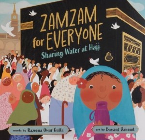 Mariam, the narrator and her parents are among the throng on their Hajj, a once in a lifetime pilgrimage to Makkah. “Mariam, Hajj is a time to do good, share and be thankful. …” Mama tells her daughter. After filling her bottle with Zamzam water, Mariam ponders upon what her good deed could be. Eventually she decides that sharing the Zamzam with others is the best idea and she proceeds to do so cup by cup. Each sharing is a learning experience for Mariam: having helped an old lady find a seat and given her some Zamzam, the lady responds by saying “Shukriya”, giving her some dates and telling her that she’s from Pakistan. Next Mariam asks two sisters if they too would like Zamzam: “Terima kasha,” comes the reply. The sisters are from Indonesia and they share some sweet pandan cookies.