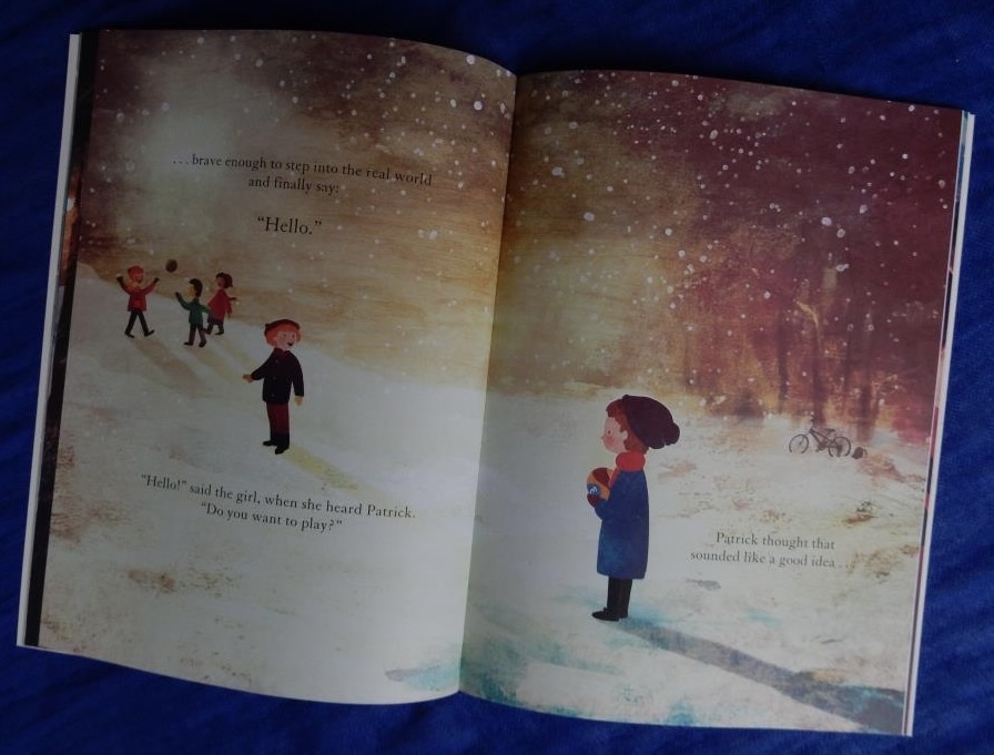 Patrick worries more and more about making friends and that’s when Billy takes him on extraordinary adventures through the air, through magical forests, eventually reaching a stadium where the boy scores the wining goal in a soccer game. Their adventures together make Billy ‘feel big and brave.’ Now he has the confidence to say hello to other children and at last he’s invited to play with them.