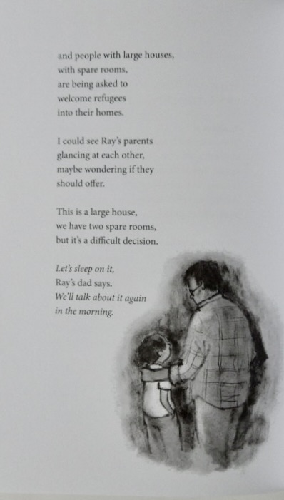 A little while later at his new school, Ray’s teacher talks about what’s happening in Ukraine and this leads to two things: first Ray writes a poem about it which is put on the school website and then his family decide to open their new home to two Ukrainian refugees.
