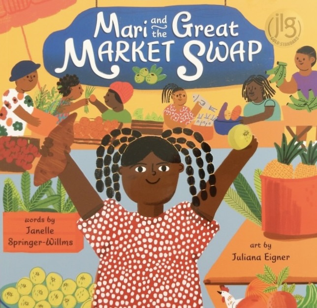 With Juliana Eiger’s vibrant, textured illustrations that are full of details to enjoy and the author’s use of Bajan creole in parts, readers really get the cultural vibe as they read this delightful book with its strong message of the importance of community.