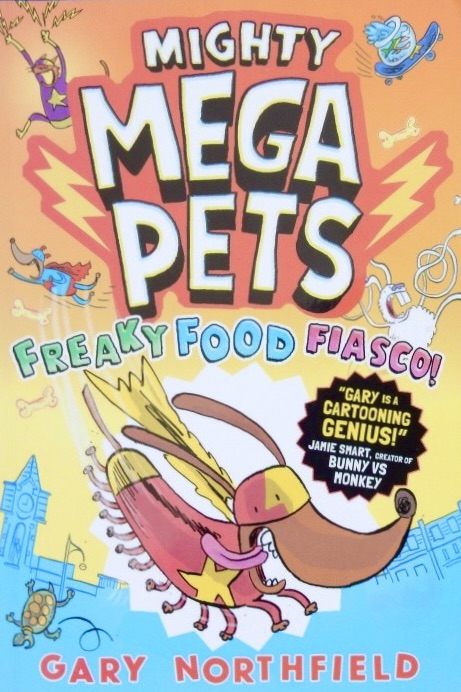 A deliciously silly graphic novel that begins with a group of pets – Daisy the dog, Ginger the cat, Bubbles the goldfish and Arthur the tortoise eating their breakfast as usual when all of a sudden BOOM, they all (except Tortoise) acquire strange superpowers, thanks to a firing of laser beams from the next door moggy. So they form the Mighty Mega Pets, intent on discovering a) why they all got these powers b) whether other pets have also been similarly affected and c) the source of the so- called superpower pet food.