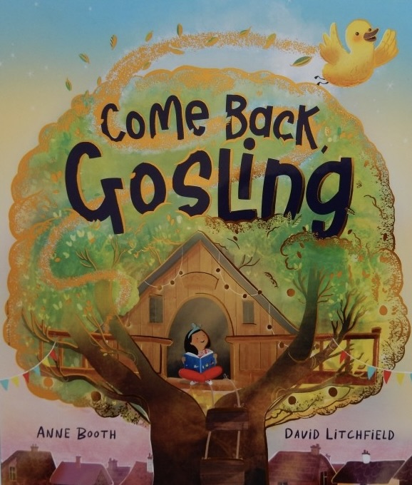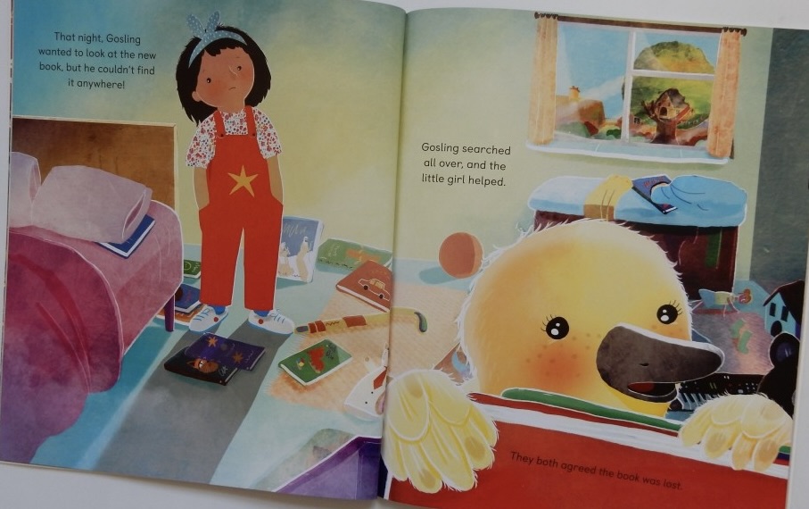 A little girl and her friend, a little gosling, love spending time together, especially their weekly visit to the library to choose new books. These they read together in their special tree house but one week they choose a book with a gosling on the cover. The little girl glances inside, closes it quickly before Gosling can see the contents and that night she hides the book so Gosling can’t find it.