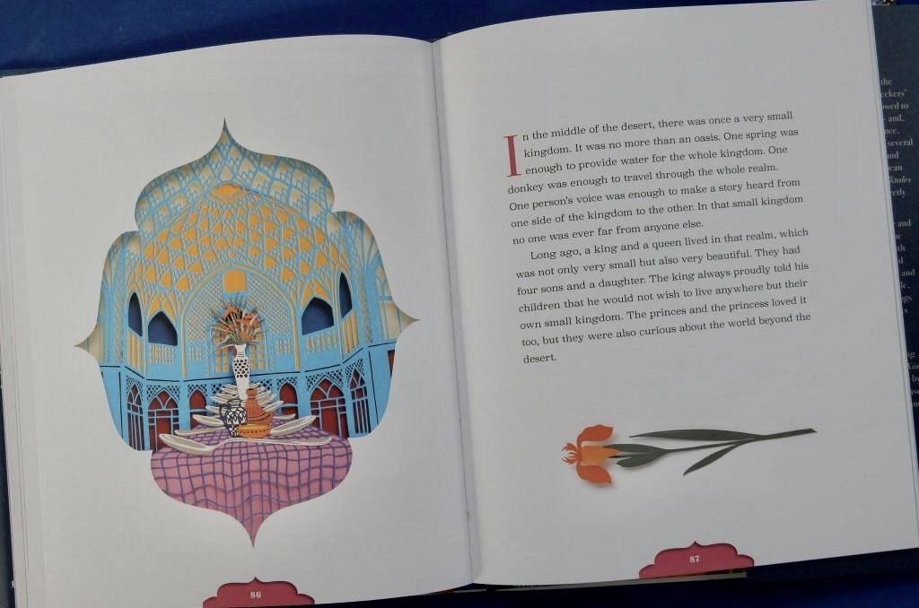 Every chapter has full page, richly coloured detailed spreads as well as several smaller pictures executed either in blues or sepia.
