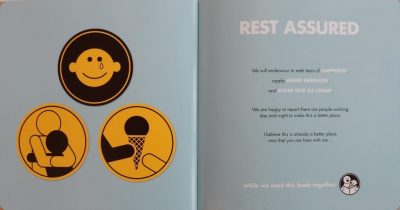 Before you even open up the first page, you’ll be captivated by this charmer with the porcine trio fast asleep tucked cosily beneath the wrap-around blanket that stays in place courtesy of the strategically placed hidden magnet on the front cover.