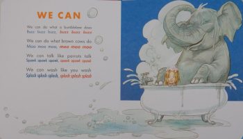 Here’s a very cute little finger puppet book that, courtesy of a thoroughly endearing parent bear, little ones find out what arms can do. There’s a favourite song to dance together to; a gentle game of lift and catch; scrummy breakfast treats to cook up; a tummy tickle and best of all lots of ‘I love you’ hugs.
