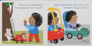 With Sherri Duskey’s rhyming couplets and Ethan Long’s digital art this little book will appeal to the many established fans of the series. I’d suggest reading it along with some small world construction toys and a set of both 2D and 3D shapes.