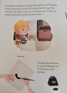In the first story, despite it being early in the morning Bird cannot wait to tell Ebb about what she’s found so she sets off beeping enthusiastically to tell Ebb about the discovery even though Ebb dislikes being disturbed at such an hour. Bird’s excitement is on account of the new boat bedecked with greenery that has arrived at the jetty.. So, Bird sallies forth alone and when she hasn’t returned some while later Ebb starts feeling concerned.