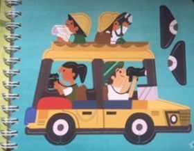 You get a jeep transporting a family of enthusiastic-looking safari goers with cameras and map,