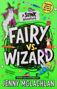 Eleven year old Danny, has just started at a new school and, so he writes in his diary, he’s desperate for people there to think he’s cool and funny. The problem is that when he opens his lunch box what does he discover inside but fairy, Stink. She says she’s returned to the Humanyworld for a short break and will go home the following day.She does so but only briefly; next day when Danny returns from school there she is sitting on his bed crying. Danny decides to let her stay till the weekend and so begins another spectacularly silly story.