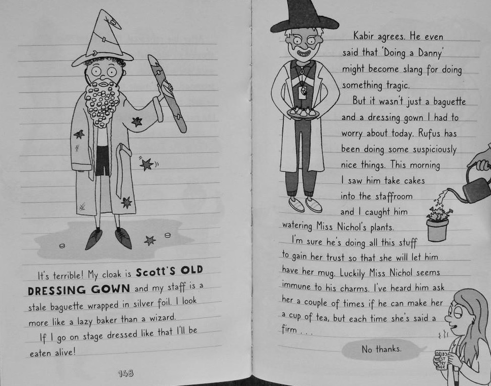 With an agreement by Stink to keep three simple rules, off go Danny, his friend Kabir and Stink to school next morning and almost immediately on arrival Stink breaks one of the rules causing embarrassment to Danny. Then comes news from Danny’s teacher, Miss Nichol, that his form group is to do an assembly and she has written a play for them to perform. It’s called Nelly the Element and the Wizard of Doom and everybody wants to be the wizard.
