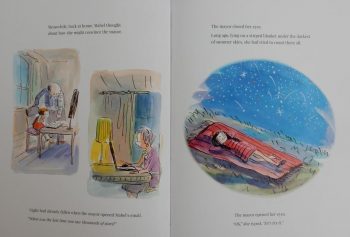 Now Mabel has a mission: to convince other people to turn off the lights. First she goes to her neighbours who having done as requested are amazed at the number of stars now visible – around two hundred. “Look, the Big Dipper!” cries one in surprise.