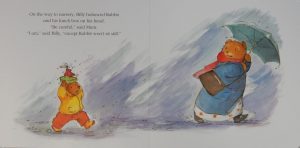 Rabbit – a small white one – is bemused by the huge Black Rabbit tailing him constantly no matter what he says or how fast he runs. Even hiding is useless, so too is swimming across the river but when he enters the deep dark wood, it’s a different matter altogether. Before long, Rabbit discovers that in certain circumstances, having large Black Rabbit as a companion can be a distinct advantage.
